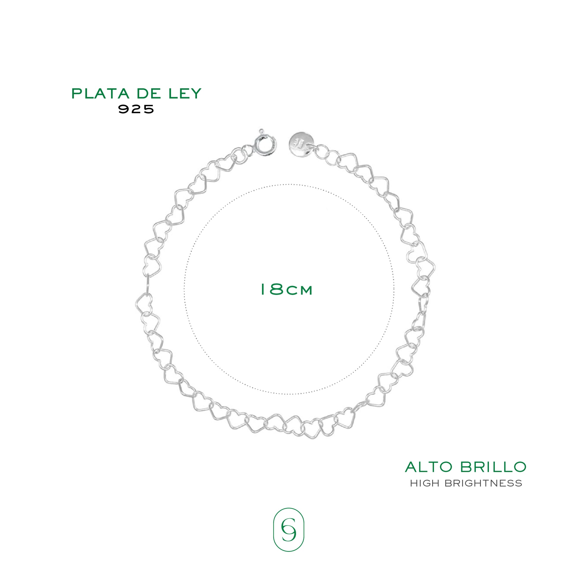 Hipoalergénico (Sin manchas verdes) La plata de ley 925 es resistente al deslustre y adecuado para pieles sensibles.